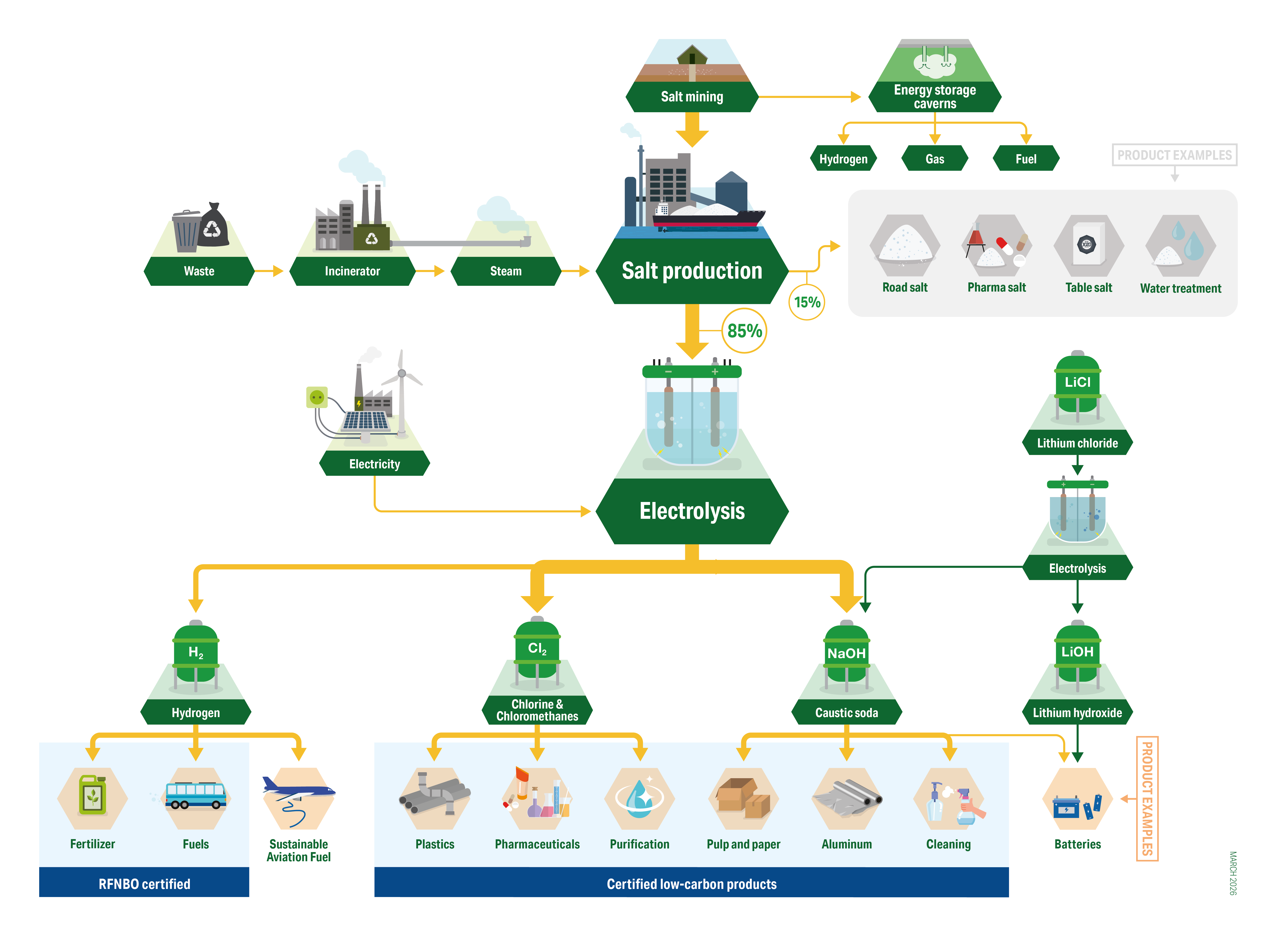 Salt, essential chemicals and energy storage