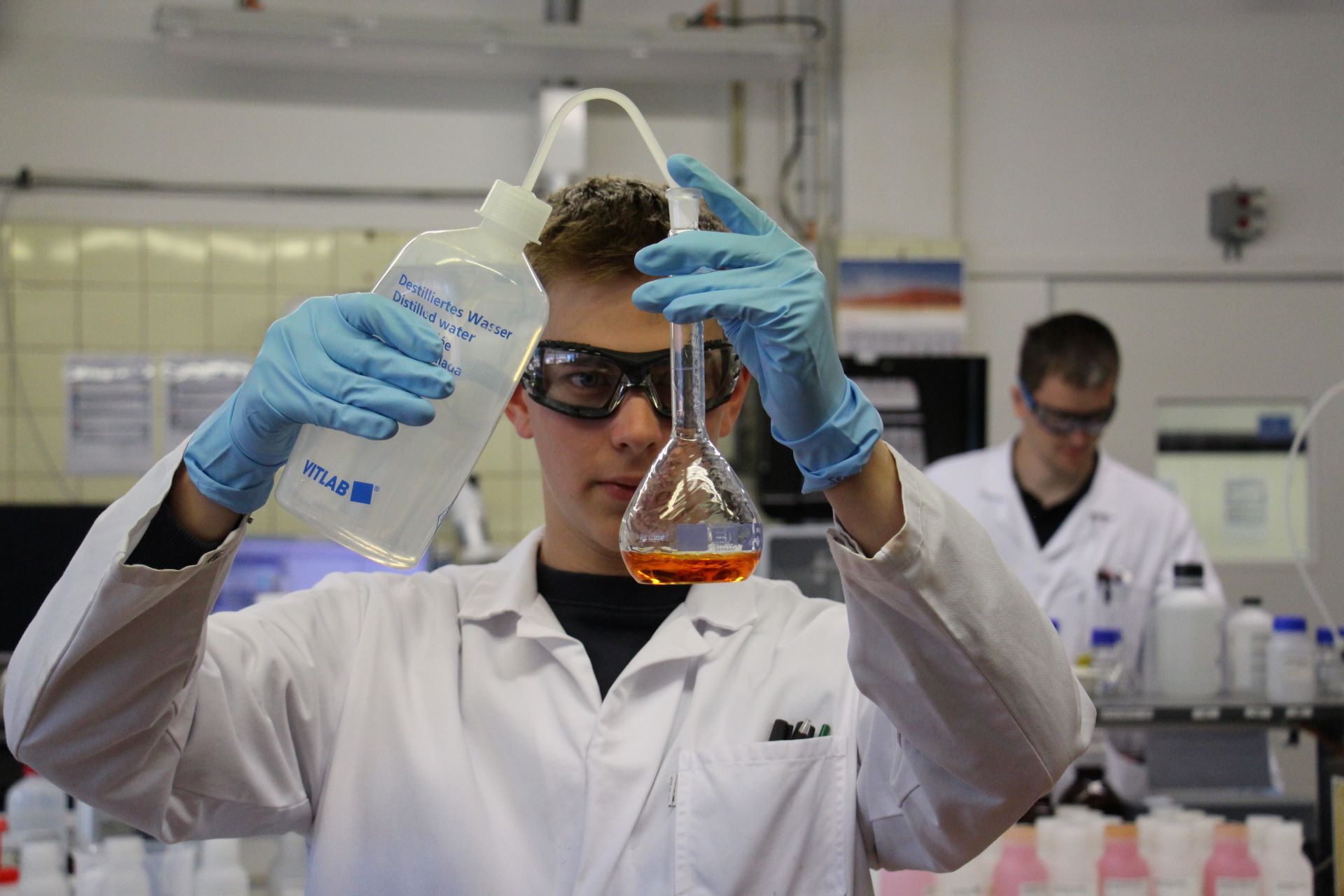Wenn Du Freude am Experimentieren hast, ist der Beruf des Chemielaboranten für Dich interessant: Du entnimmst Proben aus unseren Anlagen und prüfst die Qualität der hergestellten Chemikalien. Außerdem analysierst Du die Rohstoffe, mit denen wir unsere Produkte herstellen, um herauszufinden, ob sie die vorgegebenen Anforderungen erfüllen.