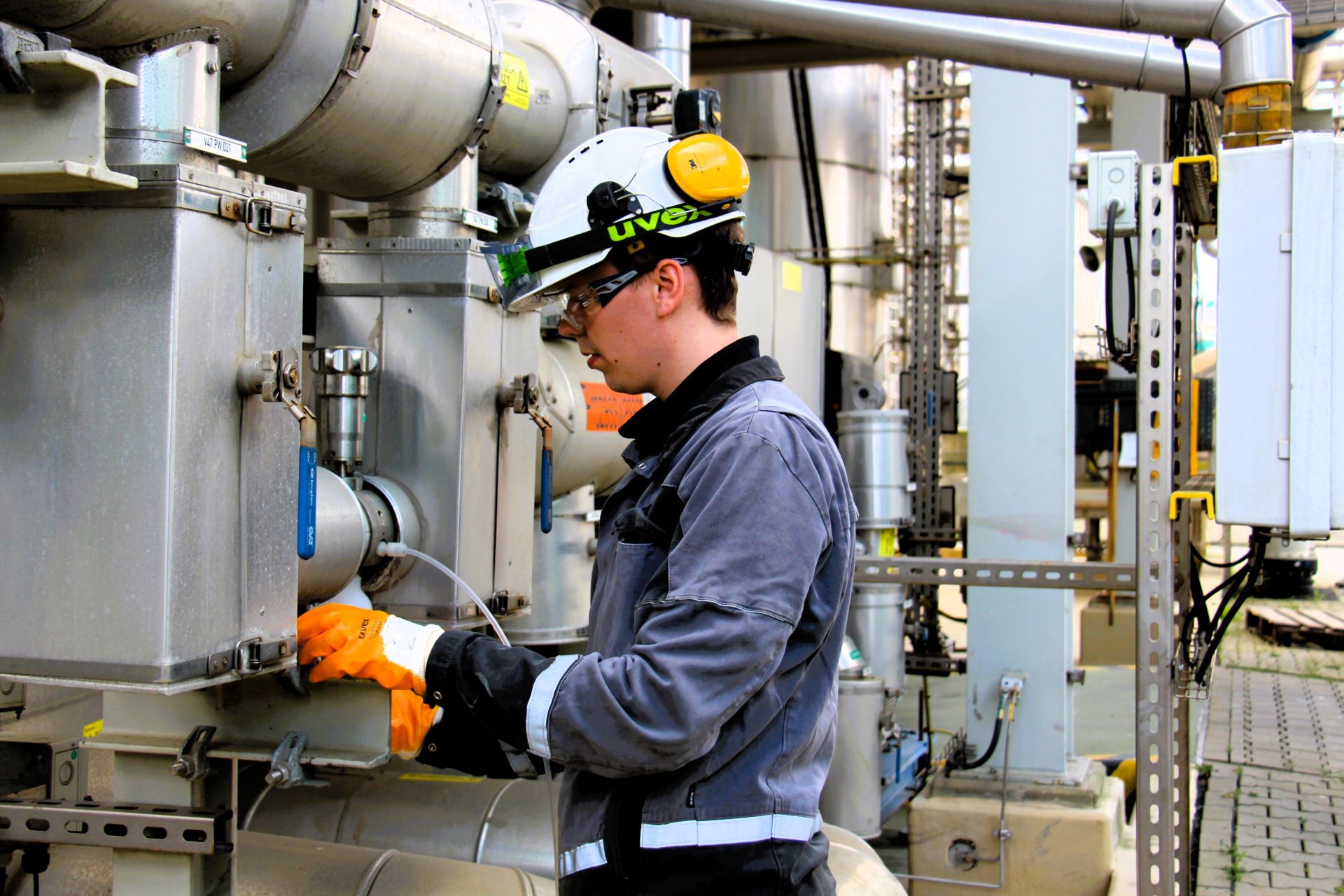 Als Chemikant arbeitest Du in der Produktion unserer chemischen Produkte. Du überwachst die Anlagen und steuerst die chemischen Reaktionen, entweder vor Ort oder im Leitstand am Computer.