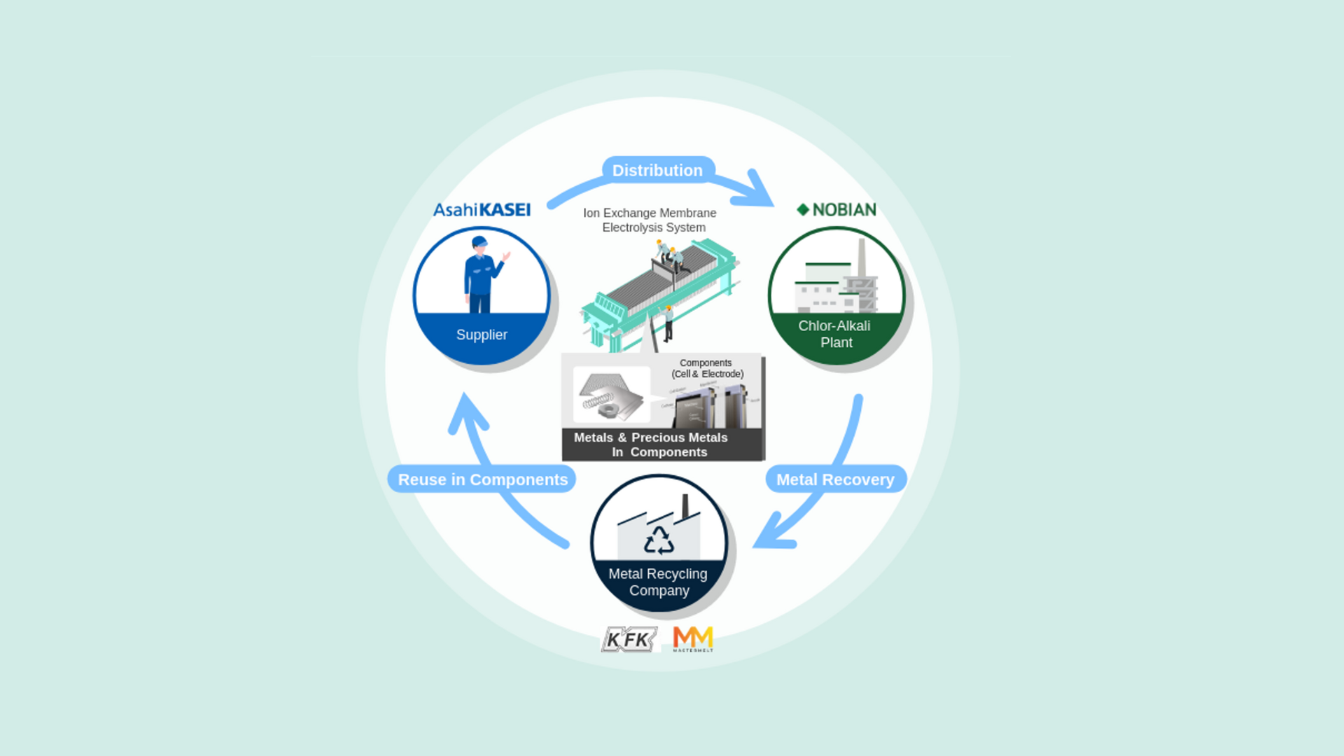 Nobian und Asahi Kasei haben 2023 in Europa ein Pilotprojekt gestartet, das sich auf die Wiederverwendung und Reduzierung bestehender Zellen konzentriert. Die neue Initiative konzentriert sich auf die Rückgewinnung und Veredelung von recycelten Metallen aus Altelektroden zur Wiederverwendung in neuen Elektroden, um eine stabile Versorgung für die Salzelektrolyse sicherzustellen und die Abhängigkeit von Neumaterialien zu verringern.